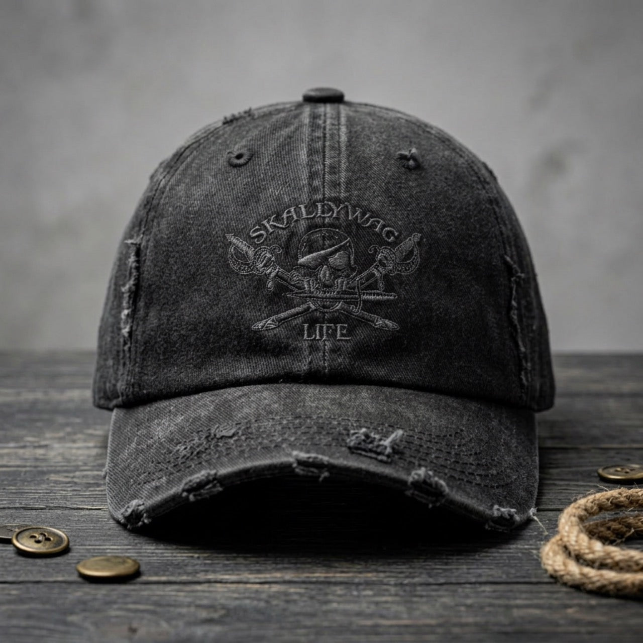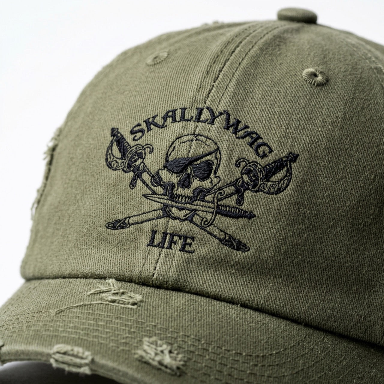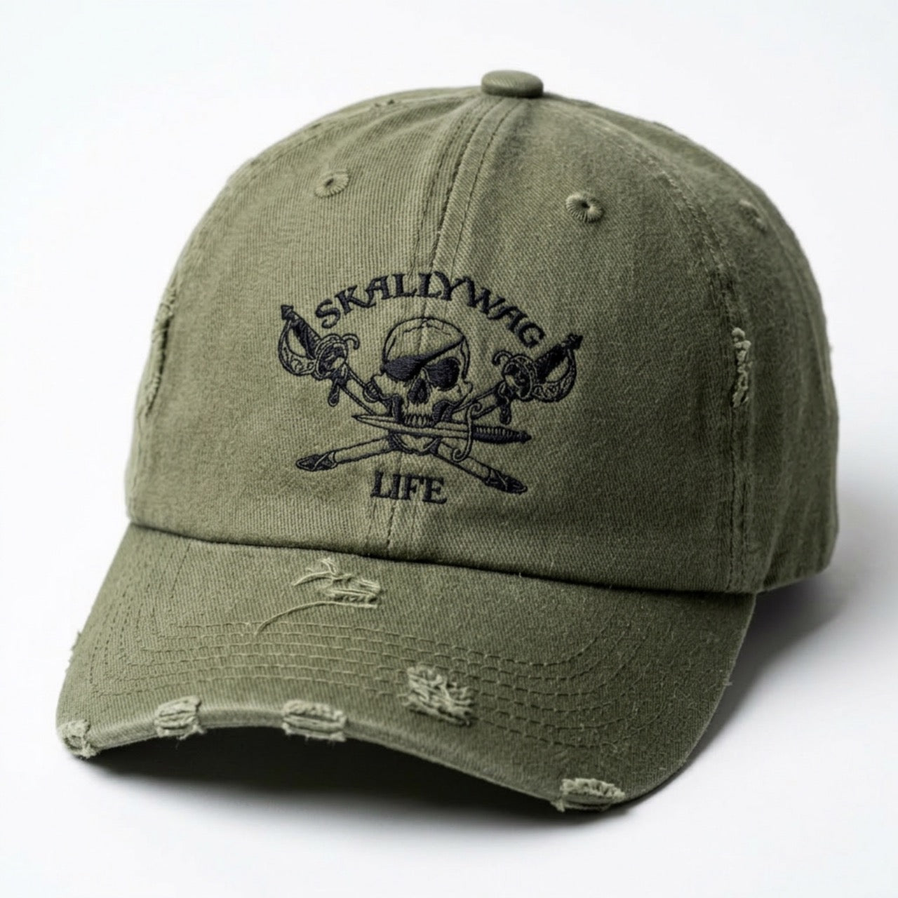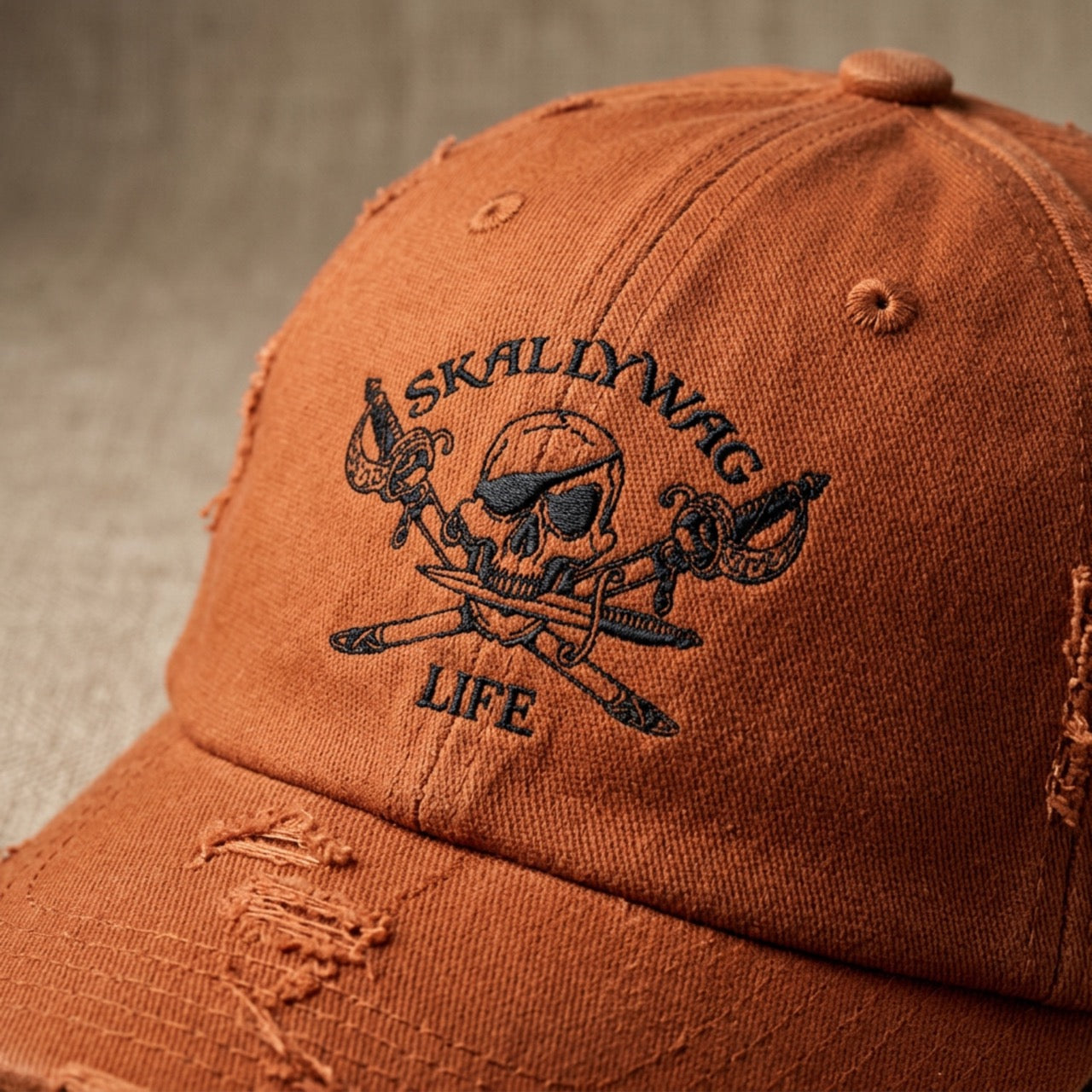 Finished with subtle distressing and our signature Skallywag Life design, this hat carries just the right amount of edge without trying too hard. Whether you're out on the water, grabbing coffee, or putting in a long day, it’s made to keep up.