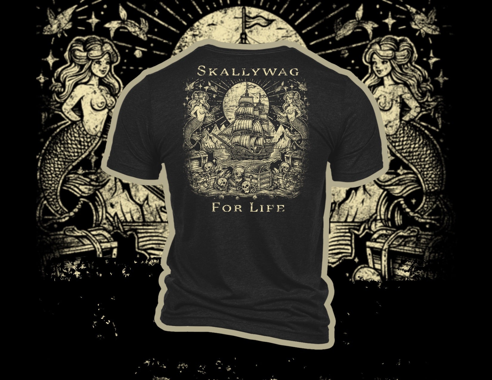 The Skallywag For Life T-Shirt says it plain—this isn’t just something you wear, it’s something you live. Built with a clean front and a detailed back graphic, it carries that bold, no-compromise attitude the brand stands on.